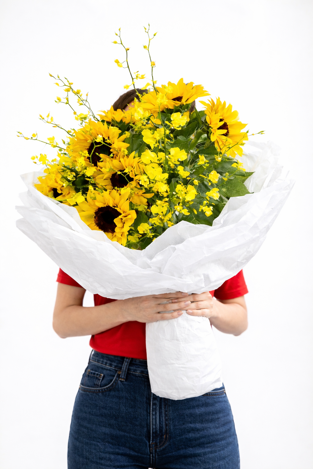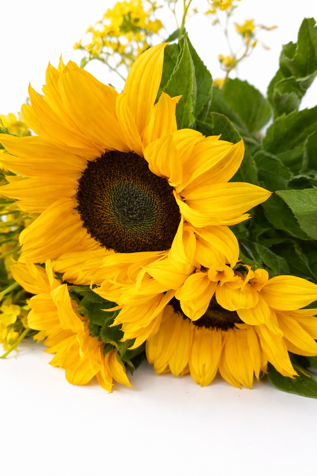 Bright sunflowers and lively yellow tones capture the feeling of new beginnings and effortless joy.